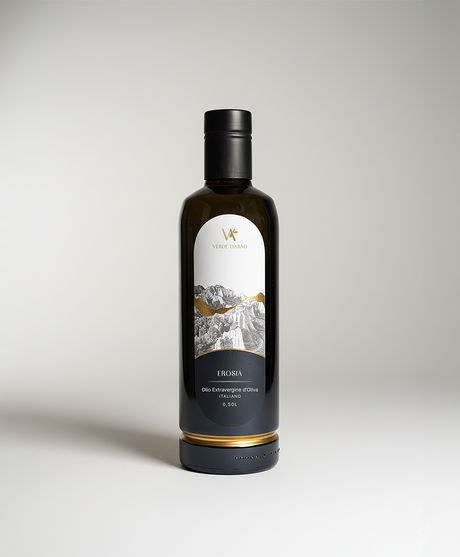 Un olio di eccellenza racchiuso in una bottiglia decorata a mano, dal design seducente, moderno e fortemente riconoscibile.