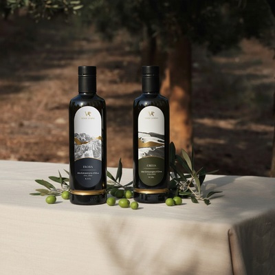 Dalle colline del Valdarno, due interpretazioni della stessa passione: Erosia, Monocultivar dal carattere deciso e profumo intenso, e Crelia, Blend armonioso e vellutato.